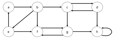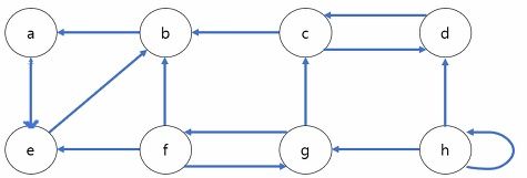∴ SCC는 {a,b,e}, {c,d}, {f,g}, {h} 가 있다.