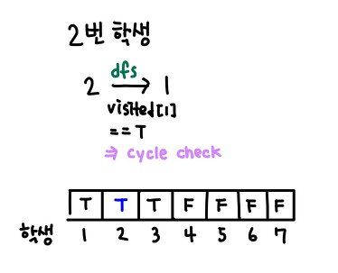 그래서 이미 확인해봤던 학생은 재귀를 돌지 않게 하면서, 다시 확인하지 않도록 해줬다.