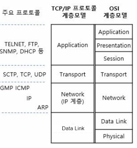 - TCP/IP는 4계층으로 나뉘어져 있다.
