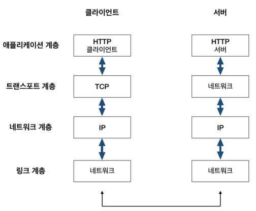 송신하는 측은 애플리케이션 계층에서부터 내려가고, 수신하는 측은 네트워크 계층부터 올라감