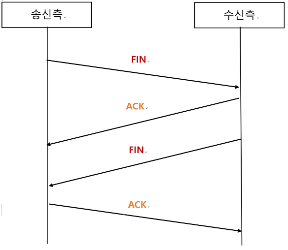 STEP 1 : 연결을 종료하고자 하는 송신측은 FIN 패킷을 전송한다.